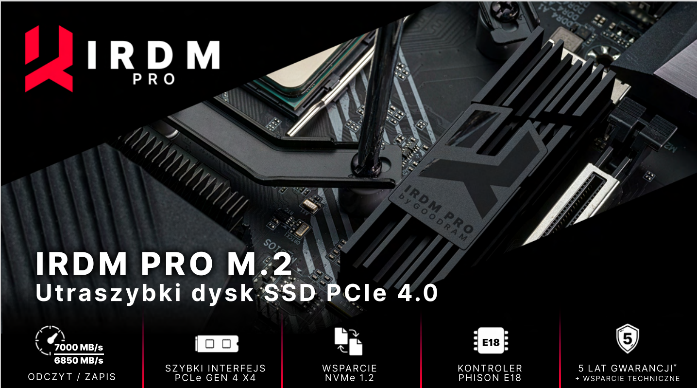 Оснащення вашого настільного комп’ютера чи ноутбука приводом IRDM PRO гарантує безперебійну та комфортну роботу в найскладніших умовах, таких як використання програм 3D-моделювання та анімації та рендерингу зображень. Інший варіант, який пропонує IRDM mass memory, полягає в тому, щоб збільшити дисковий простір на консолях дев’ятого покоління, обладнаних роз’ємом формату M.2 2280.