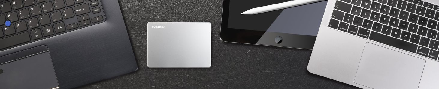 Можливо, у вас уже є багато пристроїв і ви хочете відкрити для себе ще більше. Тоді вам точно не потрібен жорсткий диск, який не зможе встигати за вашим темпом змін. Canvio Flex — це сховище в найбільш сумісній формі: воно дозволяє легко зберігати та використовувати дані на комп’ютерах Mac, ПК з Windows і планшетах, тож ви можете використовувати їх як взаємозамінні з цим простим універсальним рішенням.