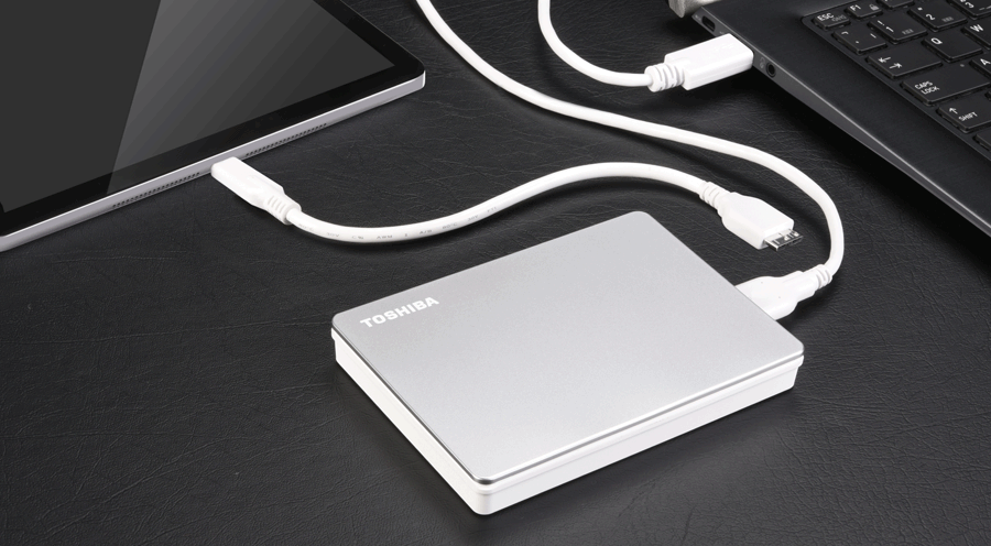 Існують ситуації, коли гнучкість підключення зовнішніх пристроїв є дуже важливою. Canvio Flex поставляється попередньо відформатованим для ПК Mac і Windows, а також для iPad Pro та інших сумісних планшетів USB-C, тож ви можете легко отримувати доступ до файлів і обмінюватися ними прямо з коробки. Просто розпакуйте та підключіть до бу