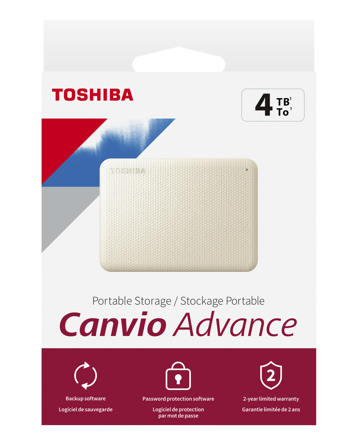 Нові накопичувачі Canvio Advance мають стильні текстуровані корпуси чотирьох модних кольорів. Таким чином, ви можете мати портативне сховище розміром з долоню чорного, світло-бежевого або червоного кольору – залежно від ваших уподобань – і з ним до 4 ТБ місця для ваших даних.