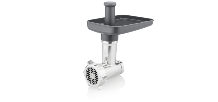 У набір також входять 3 насадки для подрібнення дрібних, середніх і грубих шматочків, завдяки яким ви легко зможете приготувати тефтелі, гамбургери, шашлики, соус Болоньєзе або традиційний фарширований перець.