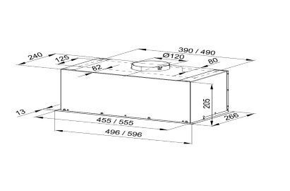Ширина: 60 см Мінімальна гучність: 45 дБ Діаметр виходу: fi12 см