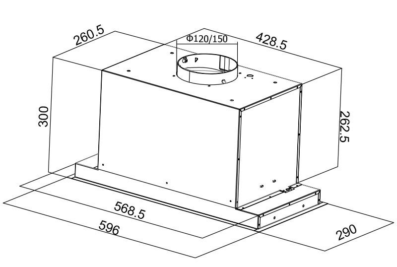Витяжка використовується в приміщеннях, де важливий простір і естетика приміщення. Завдяки своїй установці дане обладнання дозволяє швидко поглинати пару, не даючи їй поширюватися по приміщенню. Нижня (середня) панель виготовлена із загартованого скла. Він оснащений дуже ефективною турбіною 595 м3/год і світлодіодною стрічкою.