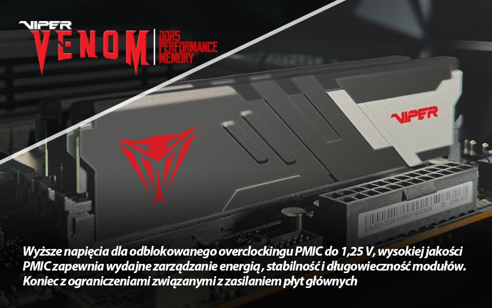 Серія Viper Venom DDR5 — це найшвидша пам’ять від Patriot для останніх платформ DDR5, що забезпечує геймерам шалену продуктивність системи! Модулі пам’яті Viper Venom DDR5 розроблені з використанням передової технології, яка встановлює стандарти, вищі за більшість надзвичайно розігнаних модулів DDR4, і забезпечує удвічі більшу швидкість завдяки подвоєнню поточної пропускної здатності DDR4.