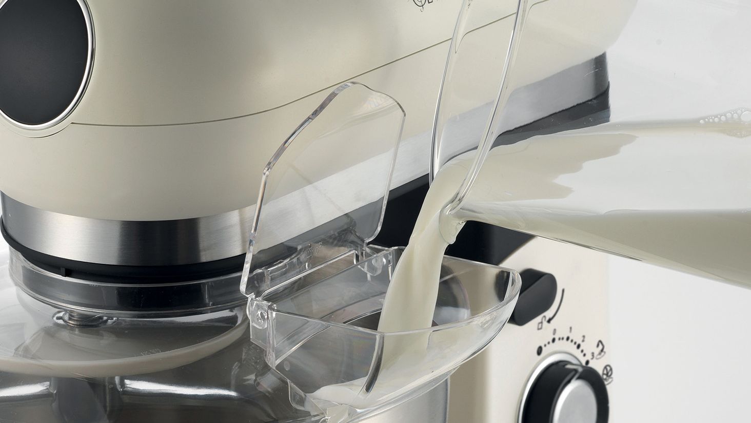 Для ще більшого комфорту використання планетарний робот Ariete оснащений бризковиком зі спеціальним отвором для додавання інгредієнтів і міцними присосками, які захищають пристрій від ковзання по стільниці під час роботи.