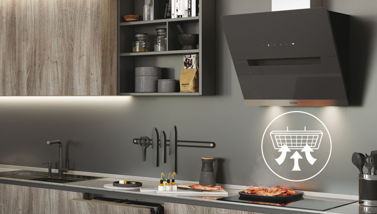 Надайте своїй кухні унікальний характер і підкресліть її стиль за допомогою витяжки Haier. Його мінімалістичний і сучасний дизайн і сенсорна панель з білим світлодіодом ідеально підійдуть до елегантного облаштування простору.