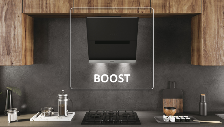 Для швидкого очищення повітря, особливо на кухні, відкритій до вітальні, функція Boost є важливим рішенням. У цьому режимі витяжка швидко впорається навіть з найсильнішими запахами. Він створений для максимально ефективного та швидкого очищення кухонного простору від неприємних запахів, заради Вашого нюху та комфорту повсякденного життя.