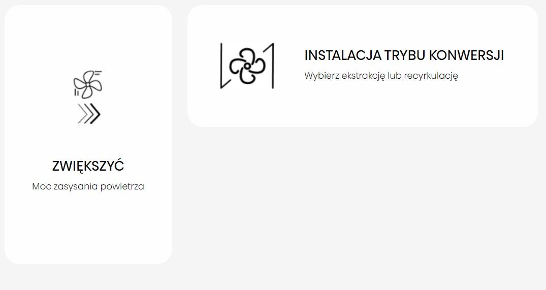 Потужне всмоктування повітря. Надзвичайно потужне всмоктування повітря, коли потрібно швидко видалити пару та інші запахи. Через кілька хвилин він автоматично повертається до попередніх налаштувань.