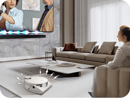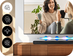 Насолоджуйтеся ідеальним звуком у будь-якому інтер'єрі. Space Adaptive Sound Pro дозволяє звуковій панелі автоматично розпізнавати оточення, а потім регулювати діапазон і тон звуку, щоб ідеально відповідати тому, де ви її розмістите*.