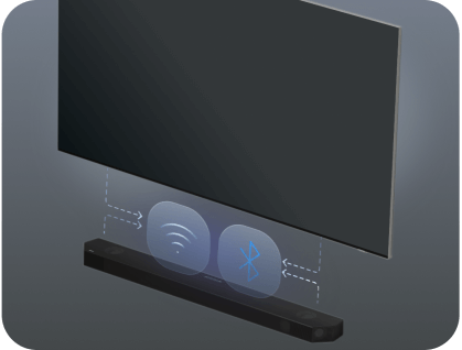 Підключіть звукову панель до телевізора через Wi-Fi або Bluetooth®, зберігаючи ідеальну синхронізацію звуку та зображення.