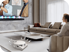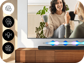 Насолоджуйтеся ідеальним звуком у будь-якому інтер'єрі. Завдяки функції Space Adaptive Sound саундбар автоматично розпізнає оточення, а потім регулює діапазон і тон звуку, щоб ідеально відповідати простору, де ви його розмістили