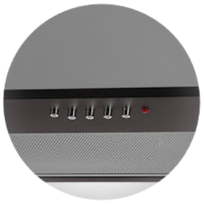 На корпусі представленої витяжки ви знайдете декілька кнопок, які дозволяють запускати пристрій на потрібній швидкості та вмикати та вимикати освітлення. Така проста експлуатація означає, що витяжкою можуть успішно користуватися люди будь-якого віку.