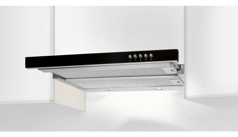 Витяжка, ширина 60 см, продуктивність 220 м3/год, механічне керування кнопками, 2 алюмінієвих фільтра.