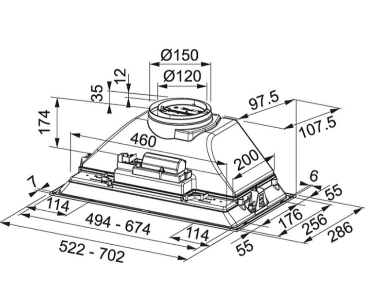 Ви дбаєте про єдиний дизайн кухні? Тоді виберіть вставну витяжку Franke FBI525BK. Він призначений для установки в підвісну кухонну шафу над варильною поверхнею - це означає, що він майже повністю прихований, а видимою залишається лише його нижня частина, яка відповідає за поглинання випарів.