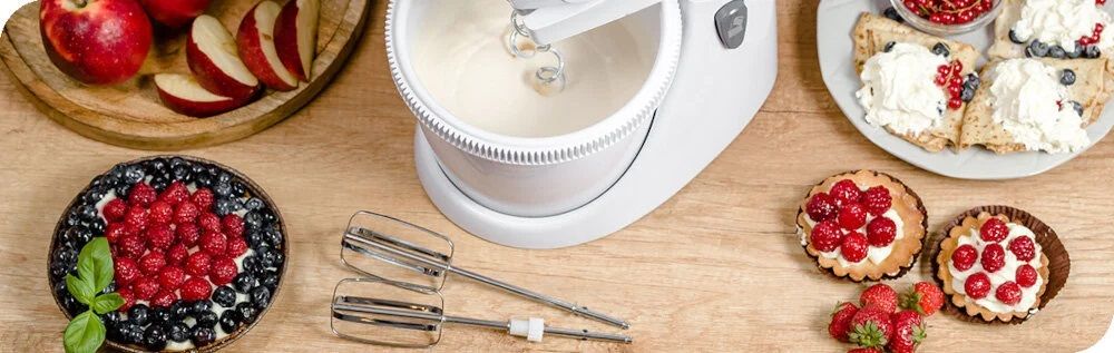 Пристрій містить дві мішалки. Використовувати їх можна, наприклад, у випічці, де в тісто потрібно вбити яєчні білки. Якщо ви хочете замісити тісто, використовуйте гак для тіста. Завдяки їм ви зможете швидко та легко приготувати домашню випічку.
