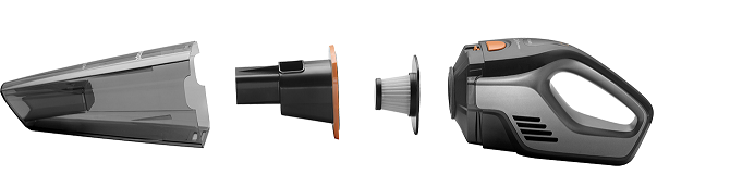 Очистити ручний пилосос дуже швидко та легко. Натисніть кнопку, щоб вийняти контейнер, в якому накопичується пил та інші забруднення. Тепер спорожніть контейнер і поставте його назад. Незабаром ваш помічник знову буде повністю працездатним.