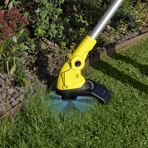 Ріжуча головка, що обертається, забезпечує чисті рівні краї газону вздовж терас і доріжок.