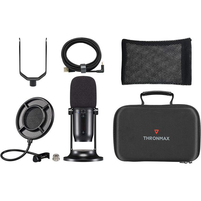Набір Thronmax розроблений для гнучкості та адаптації до різноманітних потреб користувачів. У комплект входить кришка мікрофона з фільтром Thronmax P1 Pop, яка зменшує небажані звуки і шурхіт, що важливо для чіткості запису. USB-кабель - роз'єм 3,5 мм, тримач для мікрофона, дорожній кейс, губка для мікрофона, адаптер для ниток і захисна сітка - комплексне обладнання, яке забезпечує користувачам не тільки зручне транспортування, але й повний контроль над якістю і стабільністю звуку. .