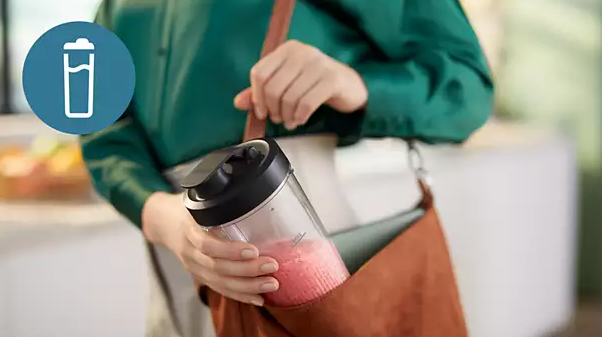 Змішуйте в дорозі завдяки зручному контейнеру на 700 мл. Приготуйте свій щоденний смузі, потім прикріпіть щільну кришку та візьміть його з собою. Ви також можете зберігати його в холодильнику на потім. Контейнер виготовлено з Eastman Tritan, на 100% не містить бісфенолу А, стійкий до ударів і його можна мити в посудомийній машині.