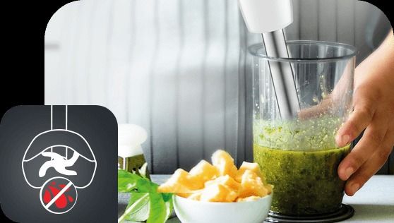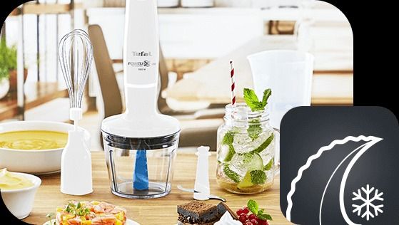Ручний блендер Tefal Infinyforce Pro має ручку з технологією плавної зміни швидкості. Натискаючи кнопку, можна плавно збільшувати швидкість змішування залежно від типу інгредієнтів.