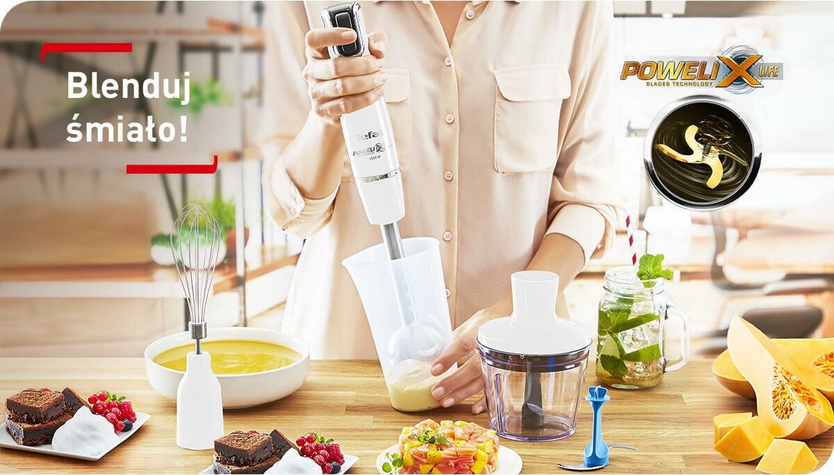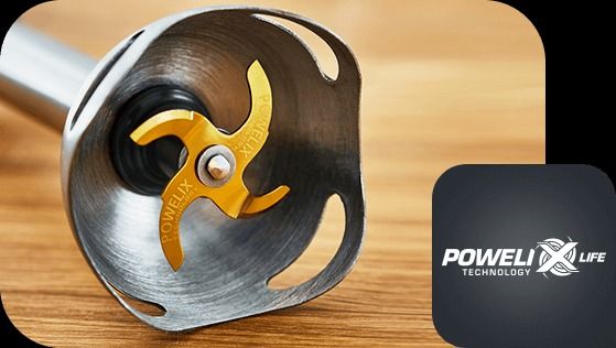 Відкрийте для себе нову якість змішування з чотирма надзвичайно міцними лезами Powelix Life, покритими надзвичайно міцним титановим покриттям. Використана технологія робить леза майже вдвічі міцнішими* та дозволяє досягати ідеальних результатів на 30% швидше**.