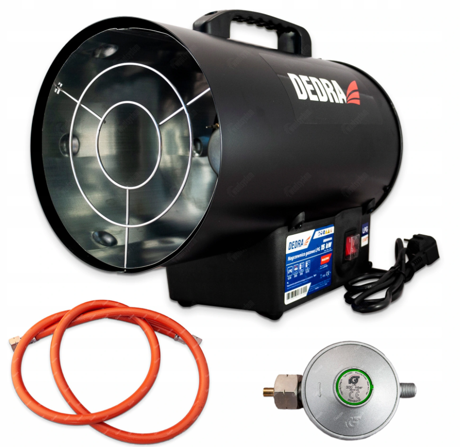 Характеристики: газові обігрівачі пропан-бутан виробляють чисте та тепле повітря. Газовий обігрівач призначений для обігріву закритих нежитлових приміщень, де необхідно підтримувати температуру на заданому рівні, таких як склади, цехи, тунелі, виробничі цехи, теплиці, приміщення під час будівельних робіт. Обігрівач DED 9941 - це газовий обігрівач для прямого нагріву. Він оснащений вентилятором, що приводиться в дію електричним двигуном, який прискорює потік повітря і підтримує циркуляцію повітря в приміщенні, і в той же час збільшує кількість кисню в камері згоряння. , що підвищує ефективність спалювання газу. Повітря, змішане з гарячими вихлопними газами, витікає з опалювального приладу і нагріває приміщення. Завдяки цьому способу обігріву досягнута висока ефективність при відносно низькій витраті палива. Завдяки застосованому захисту (відповідно до стандарту IP44) обігрівач DEDRA відповідає найвищим стандартам безпеки. Пристрій має аварійний вимикач і можливість безпечного відключення в разі припинення живлення.