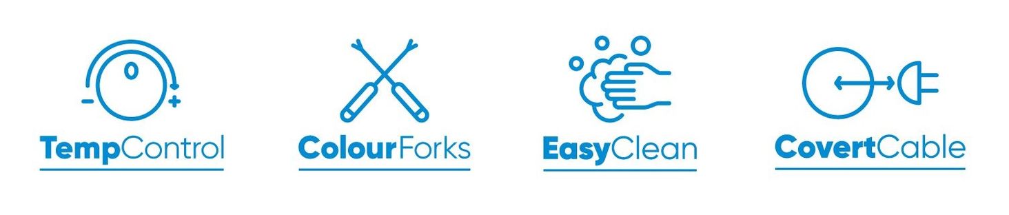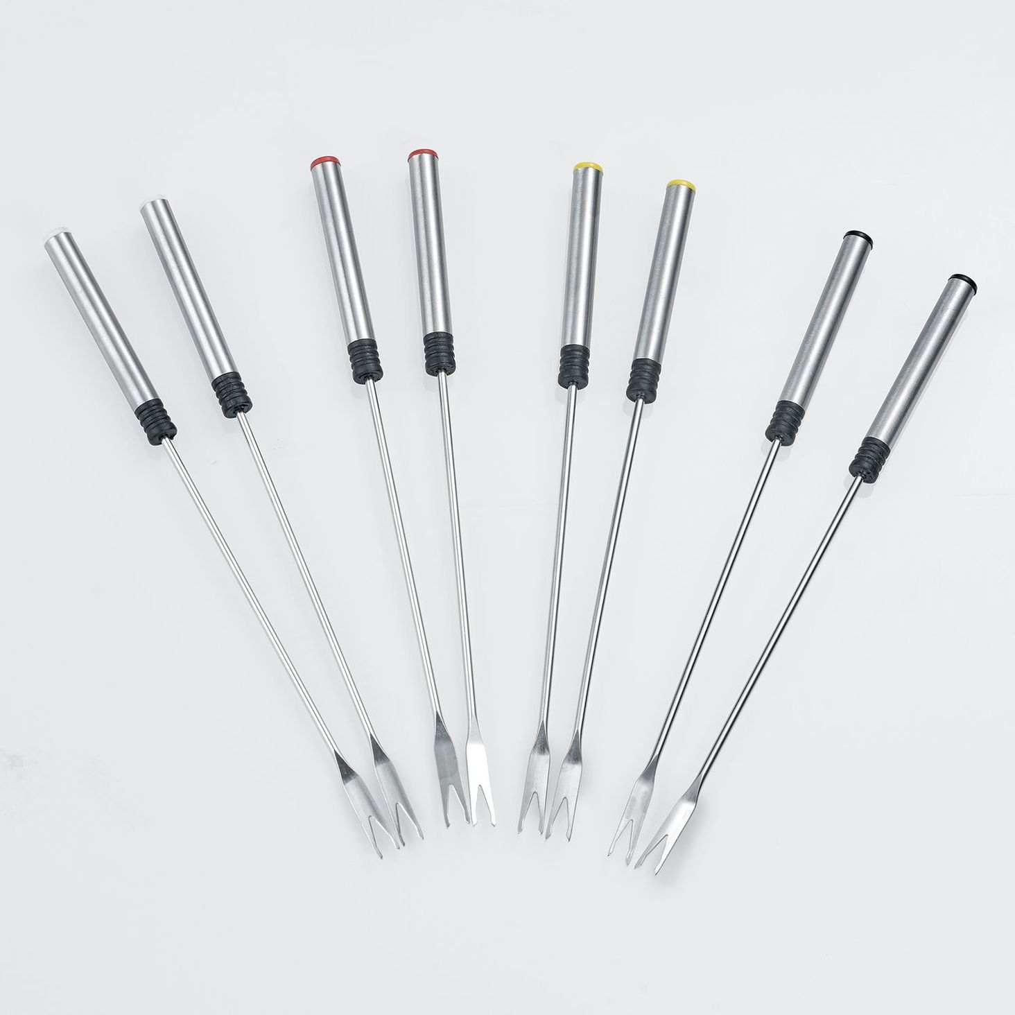 Щоб уникнути плутанини, кожен гість може вибрати одну з кольорових виделок для фондю, щоб поласувати своїми делікатесами. Приготуйте сирне, шоколадне, винне або класичне масляне фондю - завдяки широкому вибору варіантів кожен гість знайде щось для себе.