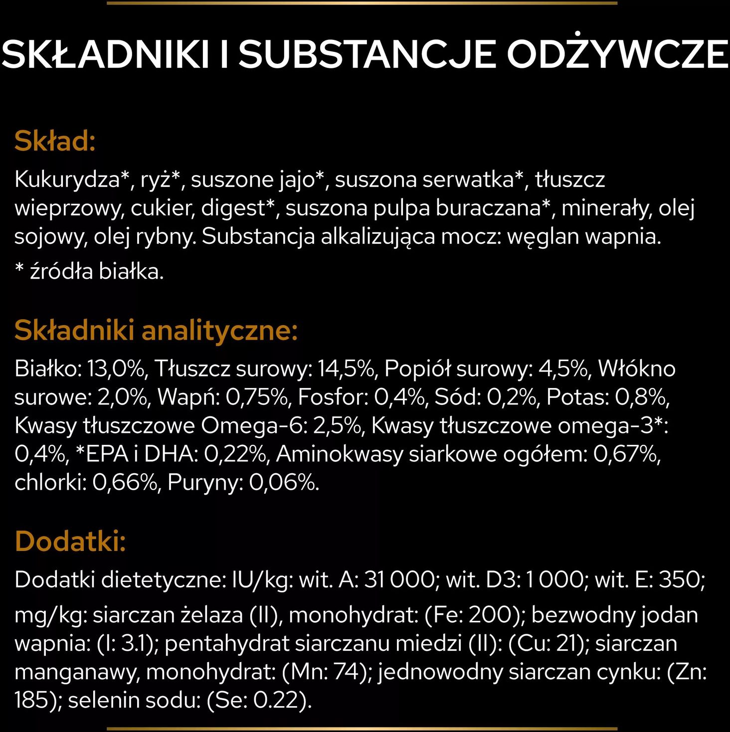 | Спеціальні продукти | Dla psów z nadwrażliwością pokarmową |