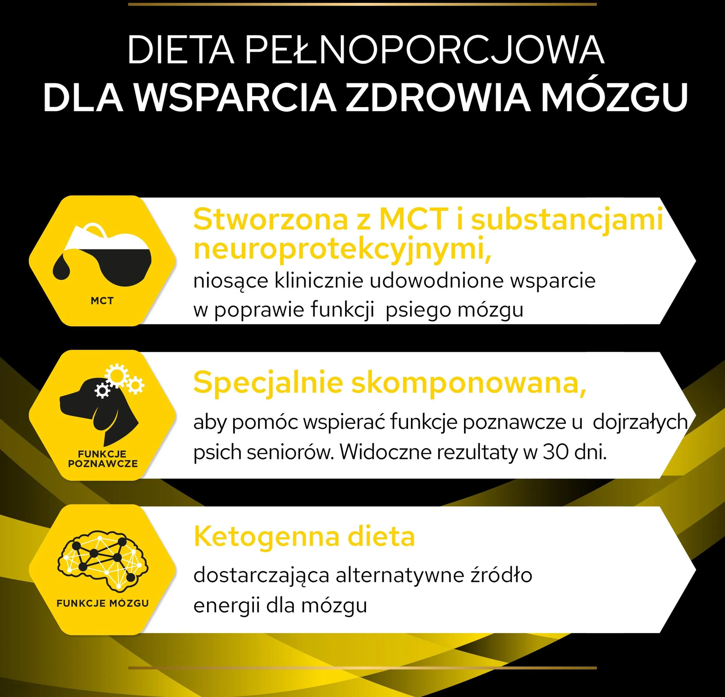 PURINA PRO PLAN Veterinary Diets NC Neurocare містить спеціальну суміш поживних речовин і середньоланцюгових жирних кислот, які можуть сприяти правильній роботі мозку. Крім того, їжа містить такі поживні речовини, як аргінін, вітаміни групи B, DHA та EPA, які можуть бути корисними для природного метаболізму мозку. Антиоксиданти, що містяться в їжі, також можуть поглинати вільні радикали та зменшувати окислювальний стрес.