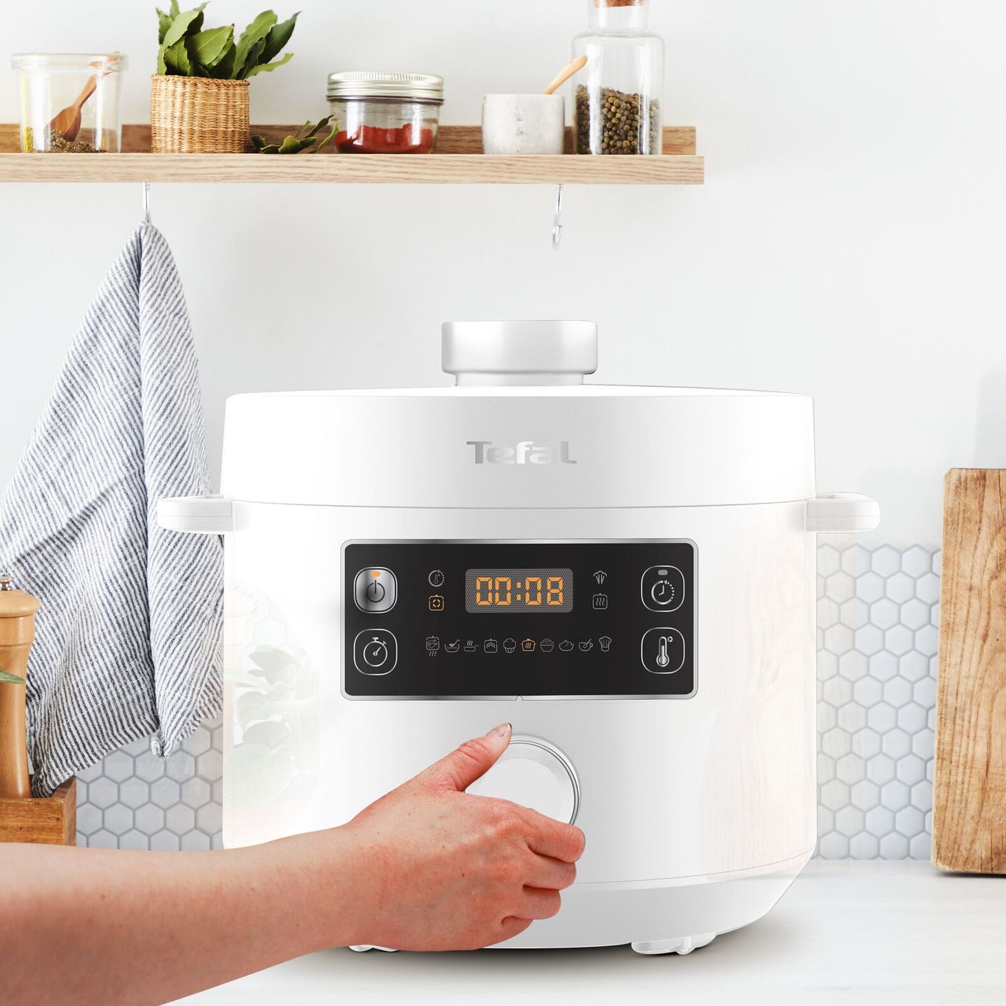 Turbo Cuisine від TEFAL зробить приготування смачних домашніх страв легшим, ніж будь-коли. Завдяки автоматичним програмам ви легко приготуєте різноманітні страви: починаючи від модних закусок і закінчуючи смачними десертами - все це в 3 рази швидше. Запатентована технологія сферичної чаші робить страви завжди ніжними та соковитими. Комфорт і зручність користування пристроєм забезпечує інтуїтивно зрозуміла ручка, яка дозволяє регулювати всі налаштування.