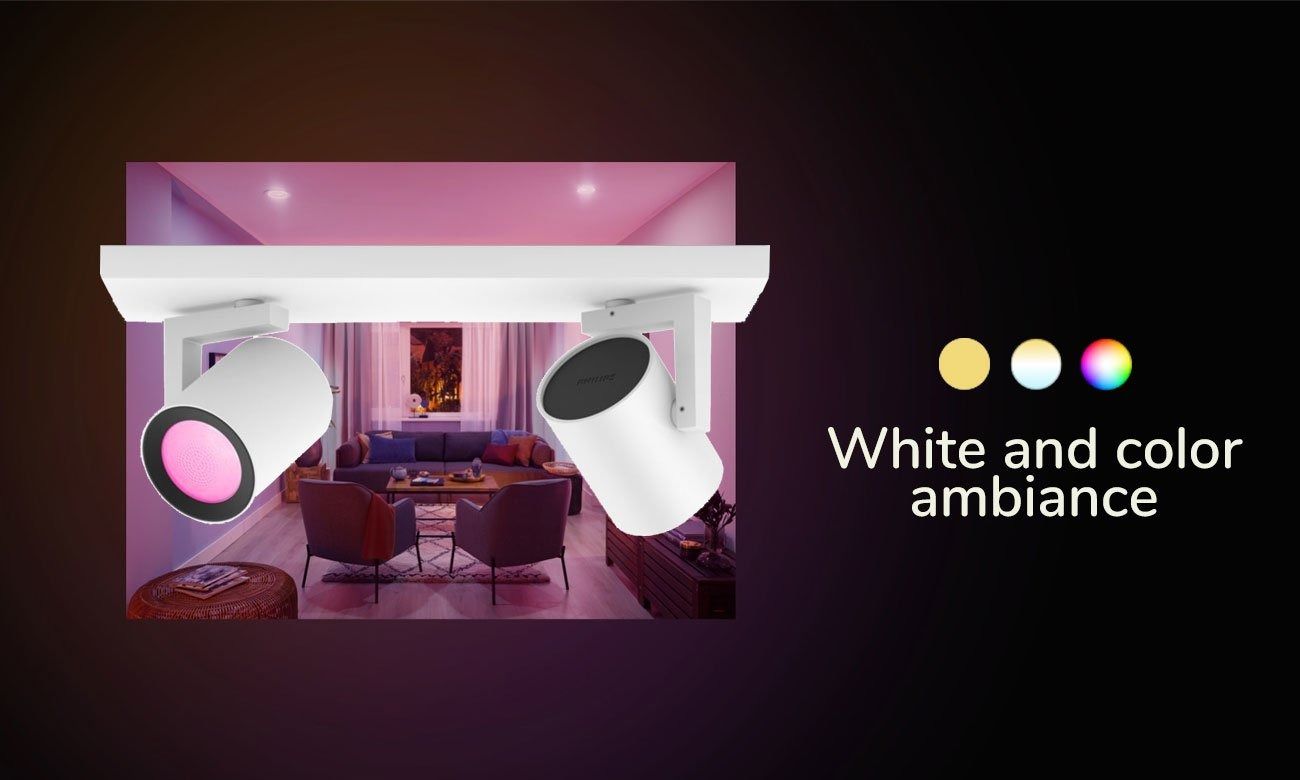 Змініть свій дім за допомогою палітри з 16 мільйонів світлих кольорів – легко й швидко створіть атмосферу, яка підходить для будь-якого випадку. Одним дотиком ви можете створити святкову атмосферу, ідеальну для домашньої вечірки, перетворити свою вітальню на кінотеатр, змінити вигляд свого дому за допомогою різних кольорів світла та багато іншого.