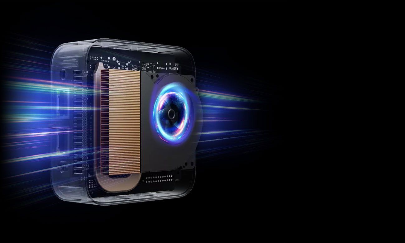 Blackview MP80 оснащено передовою системою охолодження, яка забезпечує чудову продуктивність навіть у найскладніших умовах. Ключовим елементом цієї системи є вентилятор, який обертається з вражаючою швидкістю 3500 об/хв. Завдяки цьому він ефективно відводить зайве тепло, що забезпечує стабільну роботу і продовжує термін служби процесора. Крім того, MP80 пропонує технологію активного шумозаглушення, яка підтримує рівень звуку нижче 39 дБ навіть під час інтенсивної роботи. Це дозволяє користувачам насолоджуватися спокійною та комфортною робочою обстановкою без дратівливих шумів. Ця система охолодження є ідеальним рішенням для людей, яким потрібен тихий і надійний комп’ютер, готовий до тривалої роботи без ризику перегріву.