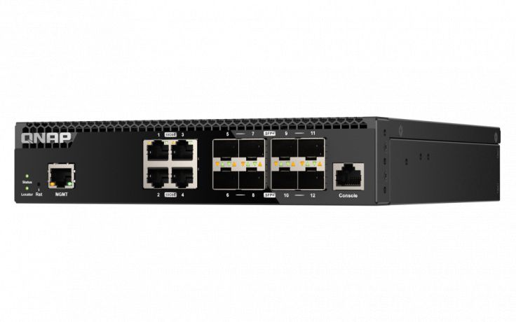 Комутатор Qnap QSW-M3212R-8S4T 12-portowy przełącznik 8x 10GbE SFP+, 4x 10GbE RJ45, 1 x 1GbE do zarządzaniaКомутатор Qnap QSW-M3212R-8S4T 12-portowy przełącznik 8x 10GbE SFP+, 4x 10GbE RJ45, 1 x 1GbE do zarządzania