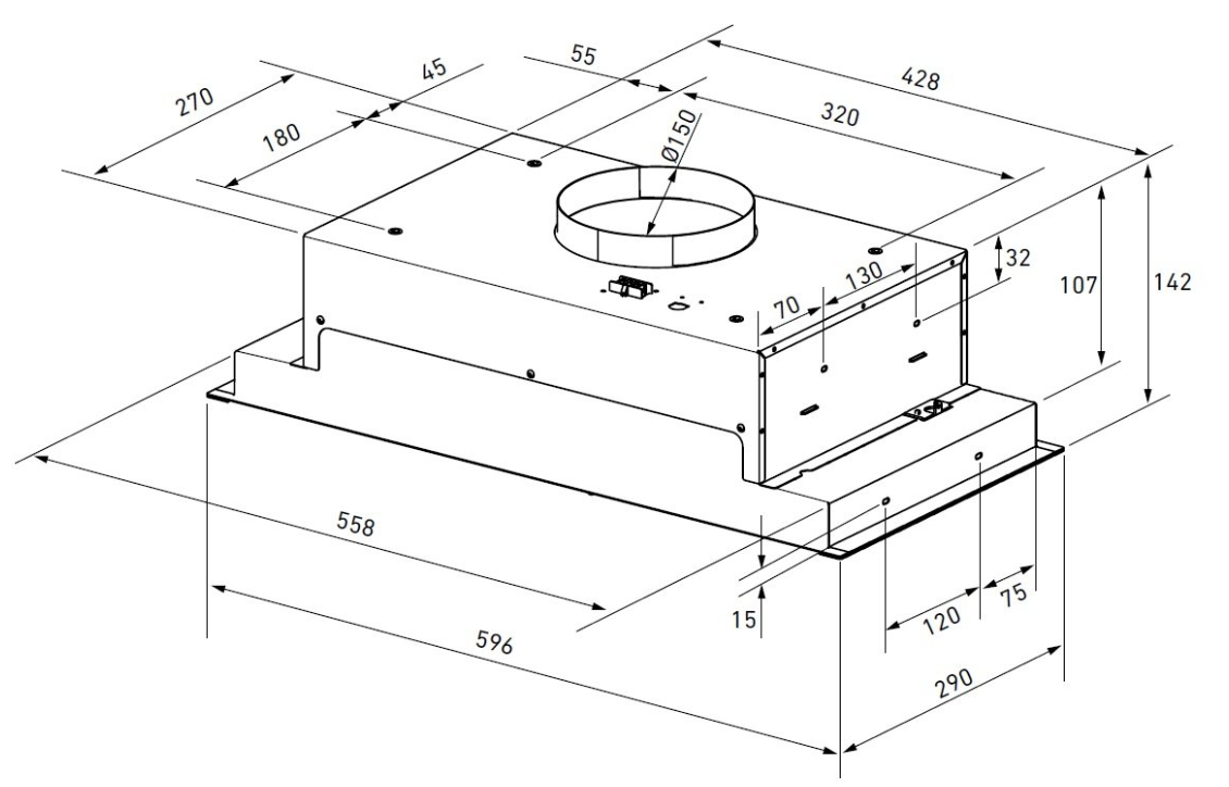 Розміри кухонної витяжки Lamezo 60.1 Black + турбіна TW 2.1