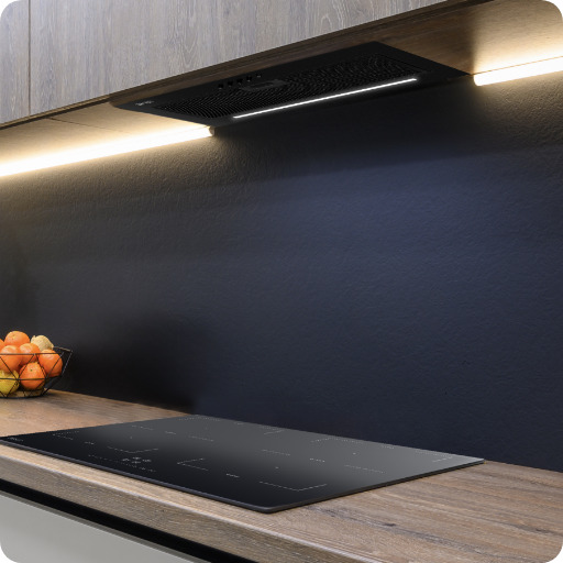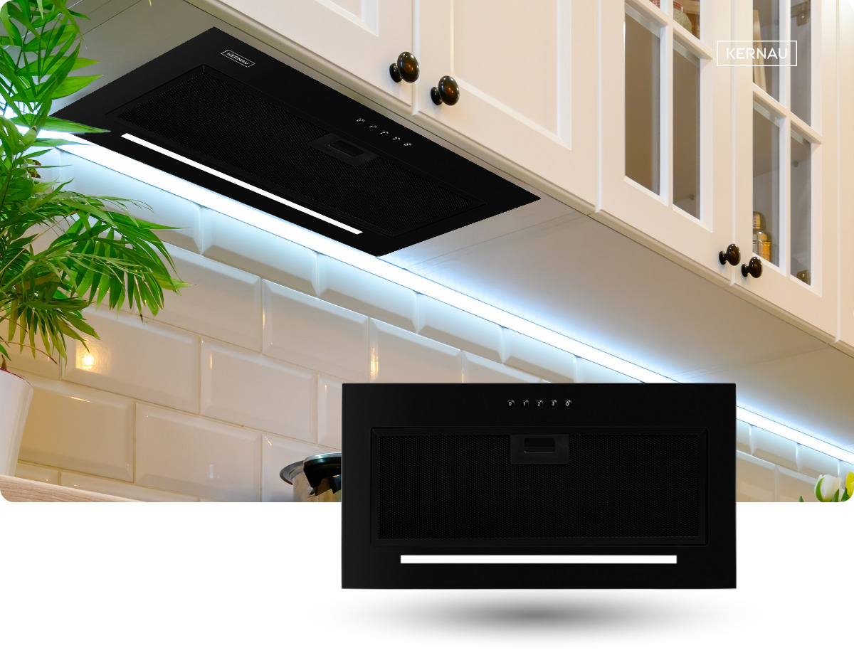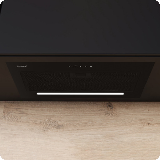 Вбудовується в кухонну шафу безпосередньо над плитою. Він майже непомітний для ока та чудово поглинає кухонні пари.