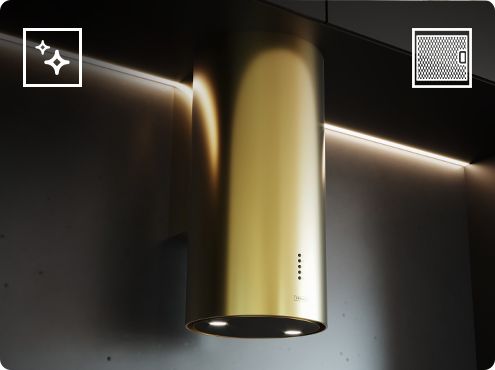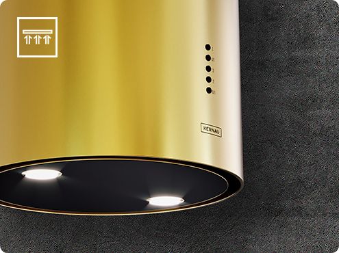 Відповідаючи останнім тенденціям дизайну, витяжка golden island є елегантним і збалансованим декоративним елементом сучасної кухні. Ідеально підходить для любителів класу та нестандартних рішень.