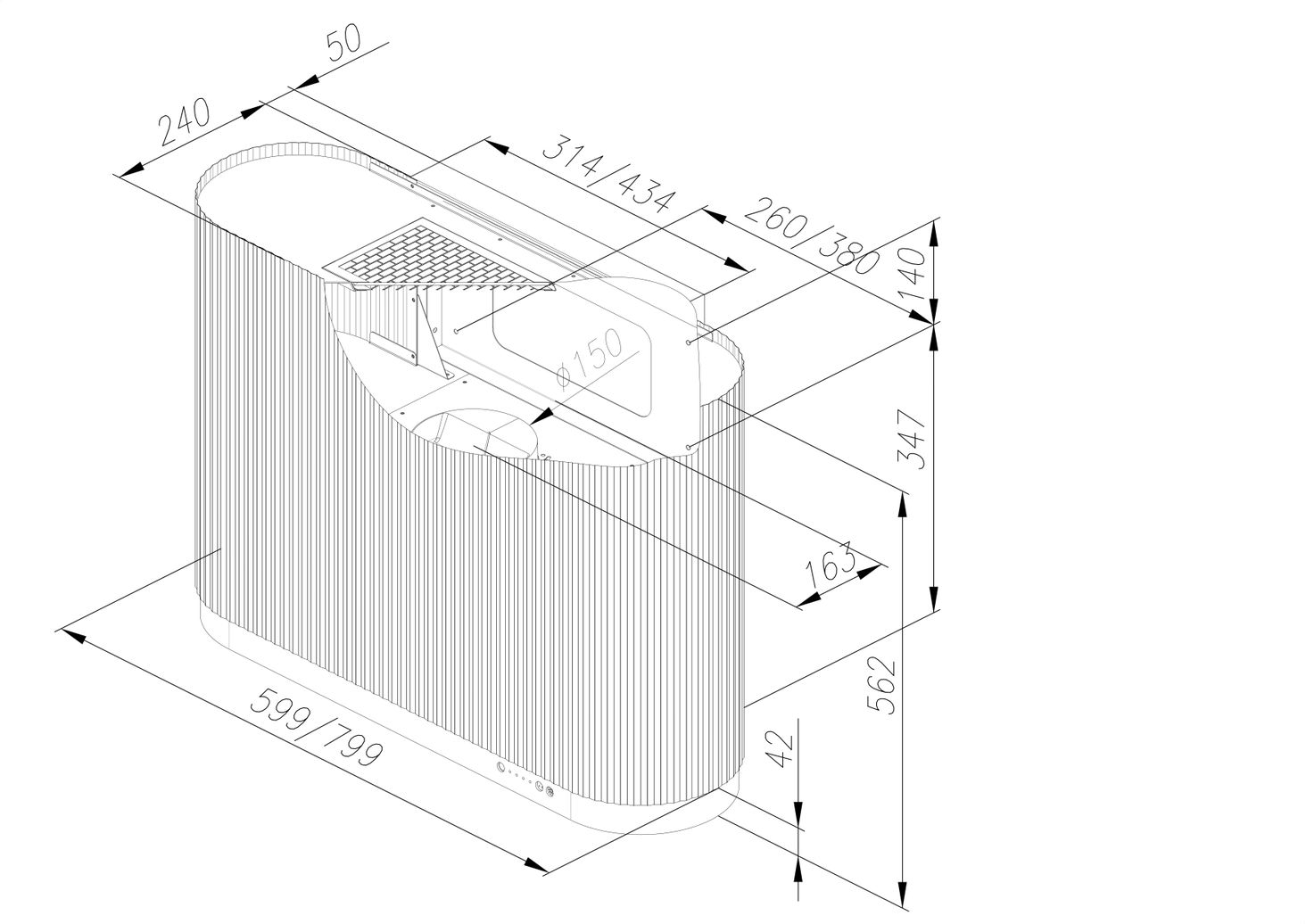 Висота 56,5 см Ширина 59,9/79,9 см Глибина 29 см Вага нетто Клас енергоспоживання 59,9 см / 79,9 см A+ / A++ Мін. відстань від електричної плити 55 см Мін. відстань від газової плити 65 см Діаметр виходу повітря 15 см Потужність двигуна 160 Вт Потужність освітлення 10 Вт Загальна потужність 170 Вт Довжина електричного кабелю 2 м