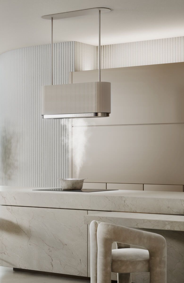 Унікальне освітлення дозволяє точно регулювати колір світла (2900K - 6000K), усуваючи розбіжності кольорів і забезпечуючи узгодженість з іншим освітленням на кухні. Завдяки цьому витяжка стає невід'ємною частиною загальної концепції вашої кухні!