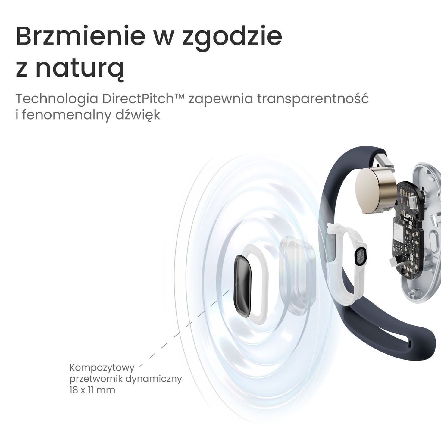 OpenFit Air — це найкращий звук. Завдяки нашій ексклюзивній технології DirectPitch™ ми говоримо не лише про збалансований звук; ми говоримо про точність, яка дозволяє вам сфокусувати звук там, де він має бути, з ще меншим витоком назовні. А ці спеціально розроблені отвори для налаштування? Їхнє завдання — підтримувати чистий і природний звук.