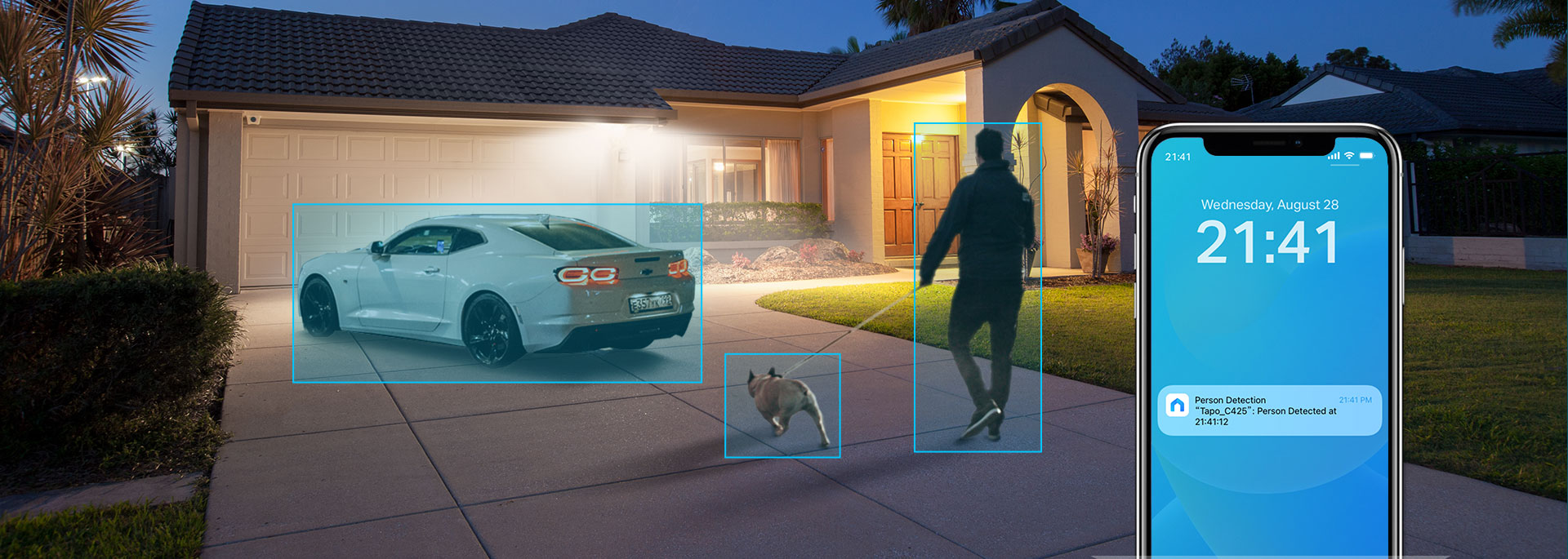 Камери TP-Link Tapo C425 оснащені системою штучного інтелекту, яка розпізнає людей, тварин або транспортні засоби та надсилає сповіщення.