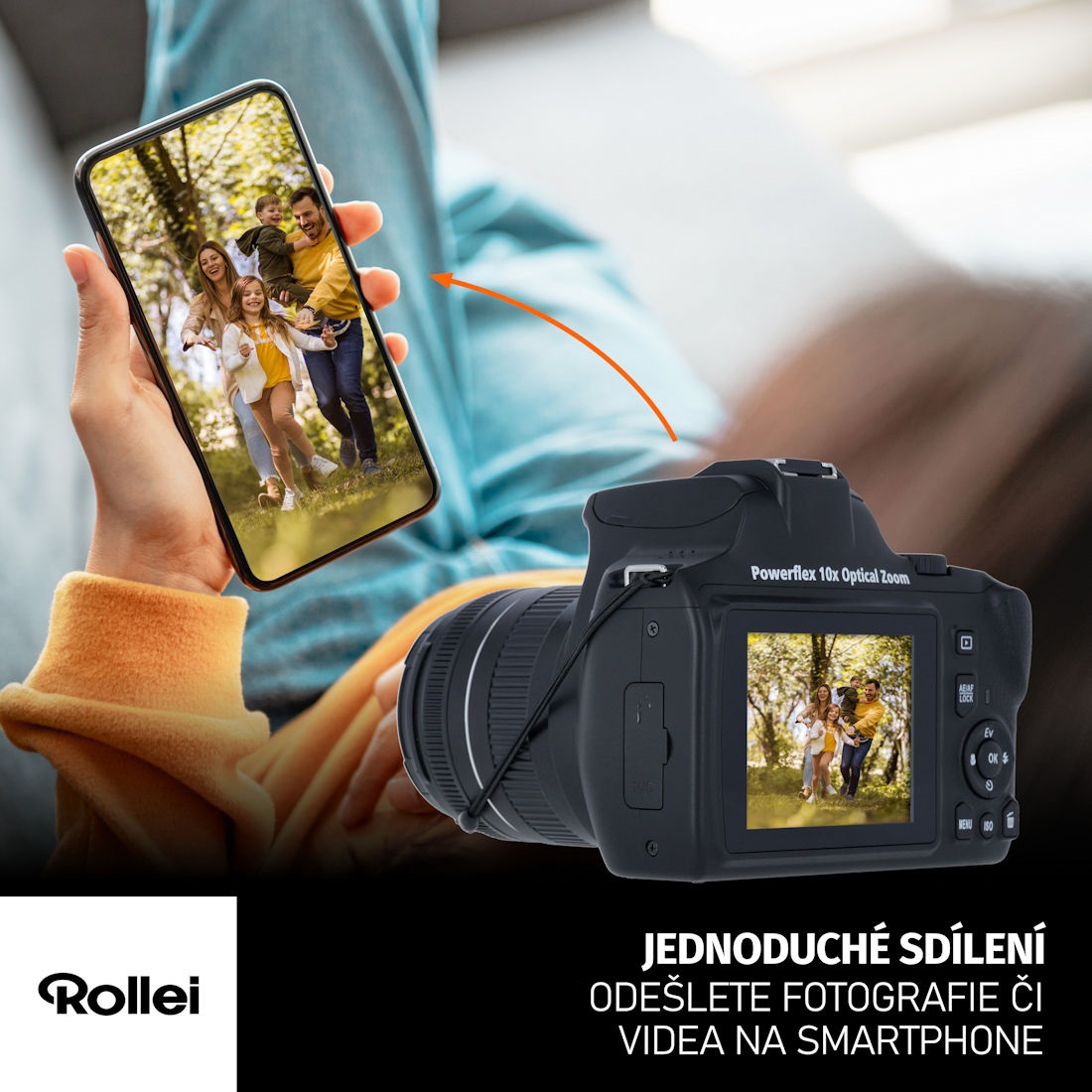 За допомогою з’єднання Wi-Fi ви можете миттєво обмінюватися зображеннями та відео, знятими з цифрової камери Rollei, на свій смартфон. Ви можете миттєво поділитися всіма зображеннями зі своїми близькими або в соціальних мережах.