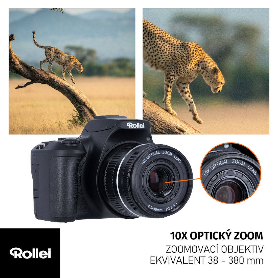 Rollei Powerflex 10x оснащено якісним датчиком Sony IMX415 із роздільною здатністю 8 Мпікс., але її можна налаштувати до 64 Мпікс. Таким чином ви отримуєте реальну якість фотографій на вимогу. Компактна цифрова камера має до 10-кратного масштабування з еквівалентом 38-380 мм. Усі фотографії та записані відеозаписи завантажуються на карту microSD. Він може вмістити цифрову камеру Rollei Powerflex 10x ємністю до 64 ГБ.