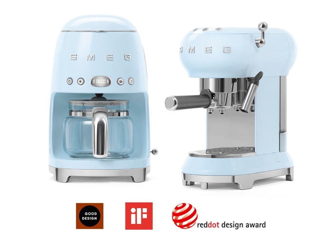 Блискучий корпус із нержавіючої сталі, хромована основа з нековзкими ніжками, скляний глечик місткістю десять чашок – усе зберігається в унікальній естетиці 1950-х рр. Кавомашини Smeg також характеризуються вище середнього функціональність. Інтуїтивно зрозуміла панель керування, що складається зі світлодіодного дисплея та кнопок з підсвічуванням, дозволить регулювати жорсткість води та інтенсивність кави або запланувати автоматичний запуск пристрою.