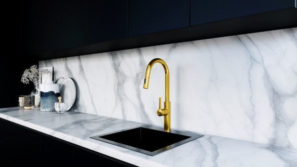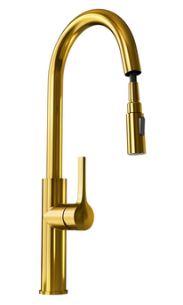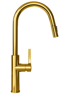 Мета: Змішувач призначений для використання з кухонними мийками. Його також можна встановити прямо на стільницю. матеріали: Кран виготовлений з латуні зі світло-золотим PVD покриттям. Ручка виготовлена зі сплаву цинку.