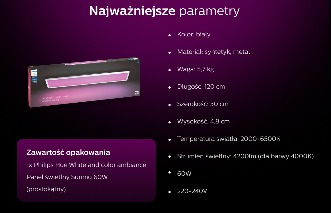 Світильник прямокутний PHILIPS HUE White and color ambiance 60W Surimu білийСвітильник прямокутний PHILIPS HUE White and color ambiance 60W Surimu білий