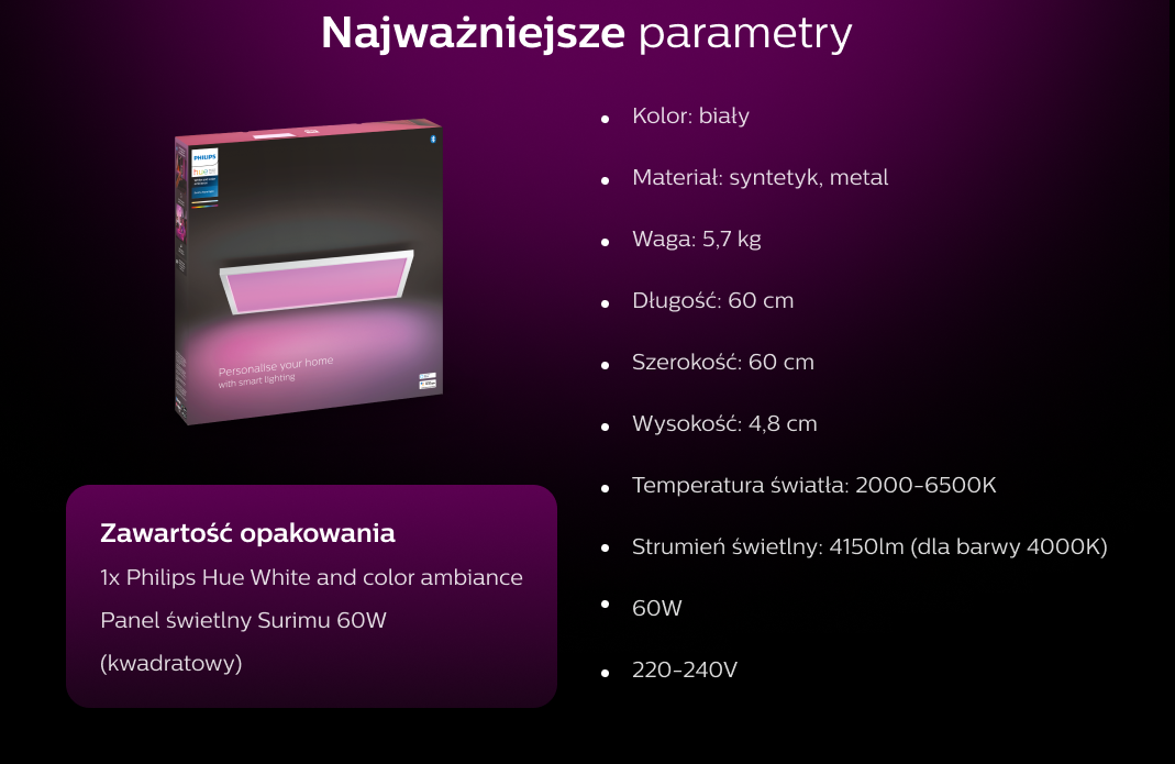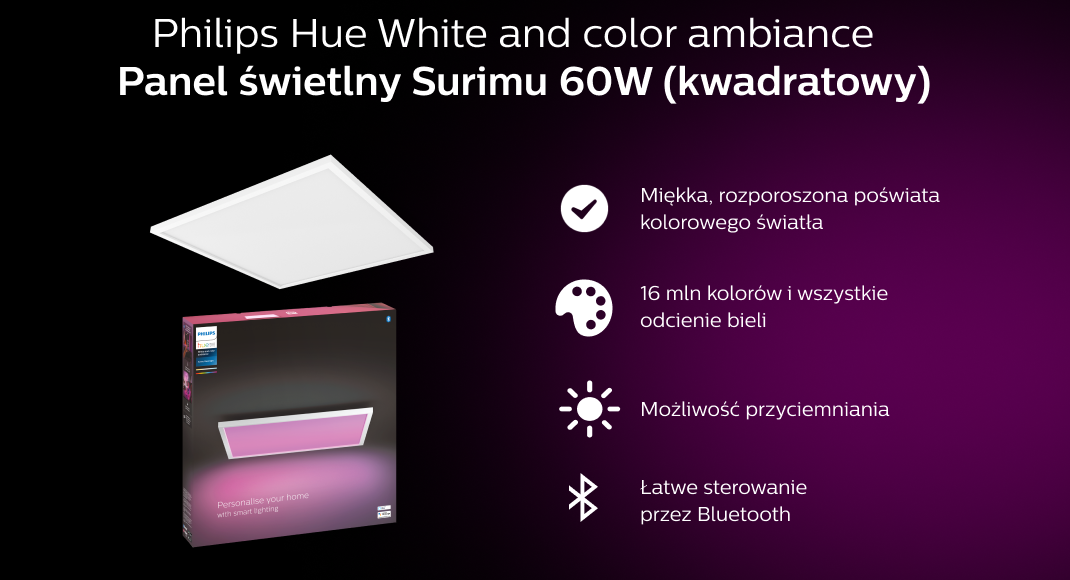 Панель з регулюванням яскравості PHILIPS HUE White and color ambiance 60W Surimu square білий