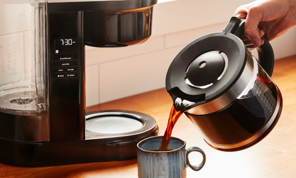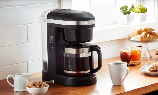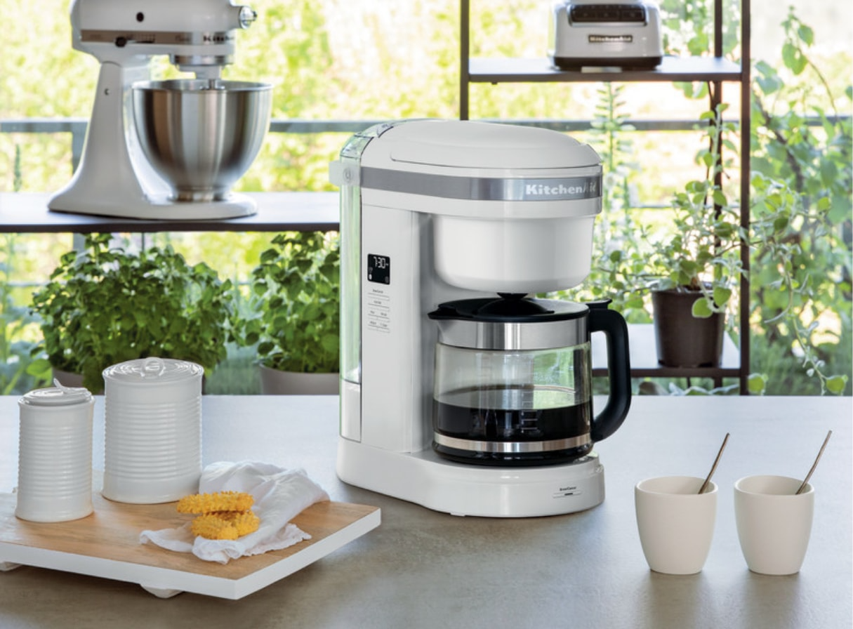 Кавоварка KitchenAid на 12 чашок дозволяє щоразу варити смачну каву. Ця кавова машина створена для чудового смаку та аромату. Це дозволяє приготувати хорошу чашку кави простим і легким способом. Унікальне спіральне ситечко з 29 отворами рівномірно насичує мелену каву водою, готуючи унікальну, ароматну чашку кави. Регулятор міцності напою дозволяє вибрати звичайний або міцний напій, який вам подобається. Завдяки накипу в багаторазовому фільтрі та мірі дозування на резервуарі для води вам більше не доведеться вгадувати, скільки кави та води вам потрібно, щоб отримати ідеальні результати.