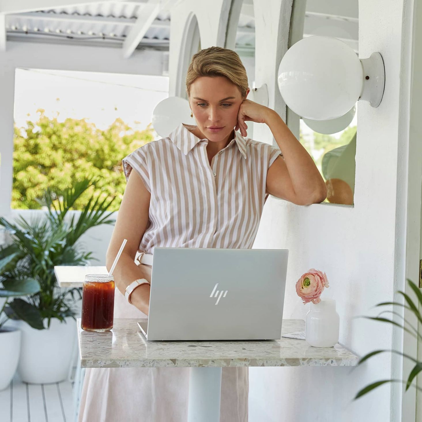 Отримайте миттєвий захист від сторонніх очей за допомогою технології HP Sure View Reflect, завдяки якій екран вашого ноутбука виглядає як блискуча мідна поверхня, якщо дивитися збоку, що робить відображуваний вміст нечитабельним.