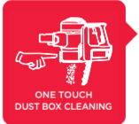 Гігієнічне спорожнення контейнера Натисніть кнопку, щоб відкрити контейнер для пилу, і весь його вміст потрапить прямо у відро для сміття.