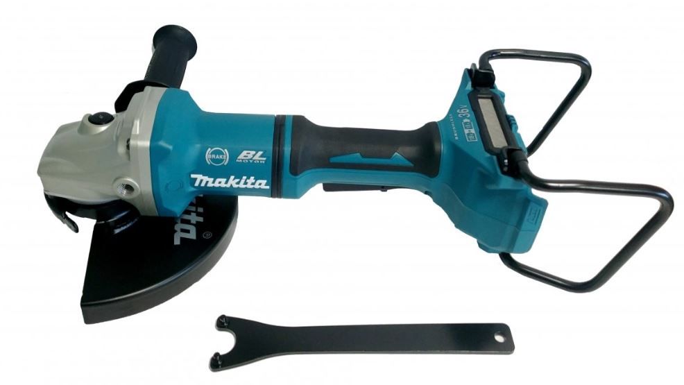 Технічні дані Розміри (загальна довжина): 499 мм Діаметр отвору диска: 22,23 мм Напруга живлення: 2 x 18 В Тип батареї: Літій-іонна Підтримувані батареї: 1,5 / 2,0 / 3,0 / 4,0 / 5, 0 / 6,0 Аг Швидкість холостий хід: 6000 об/хв Вага (EPTA): 5,2 - 8,0 кг Діаметр диска: 230 мм